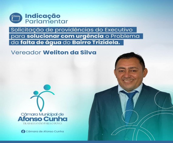 O vereador Weliton da Silva - PDT, apresentou o Requerimento 003/2021, na sessão da última sexta (19), para que fosse solicitado do Executivo as providências para solucionar com urgência o problema da falta de água do Bairro Trizidela.